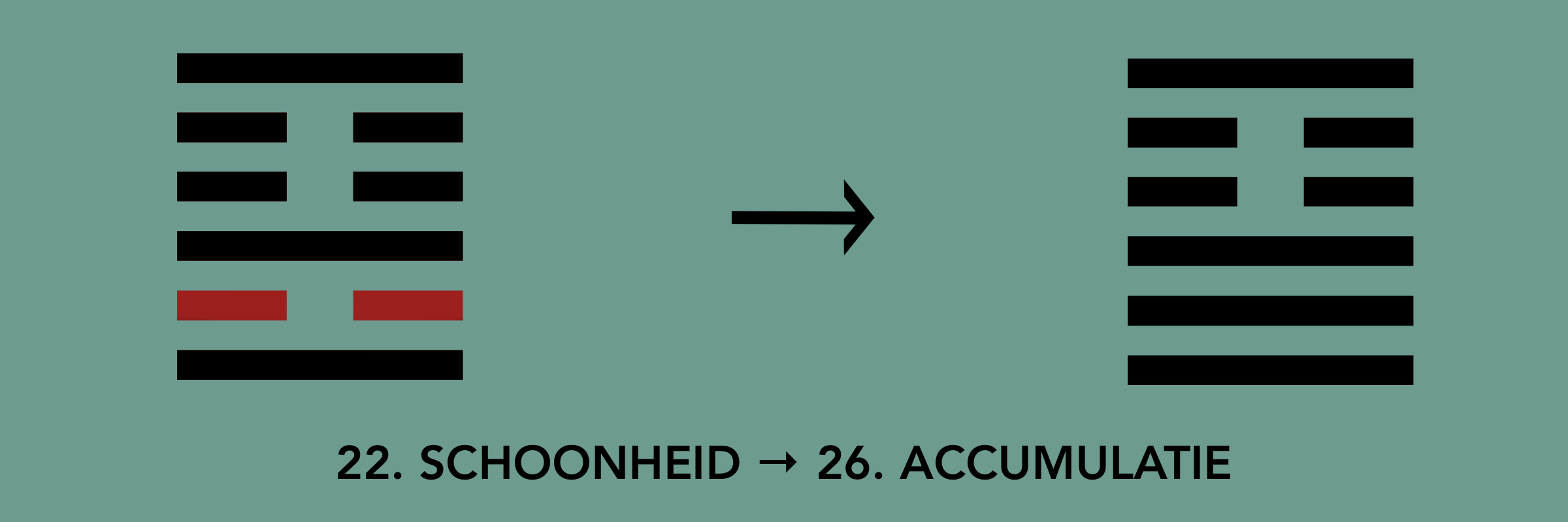 De andere vijf lijnen blijven zoals ze waren. Het hexagram van Schoonheid verandert in dat van Accumulatie: Berg boven Hemel.
