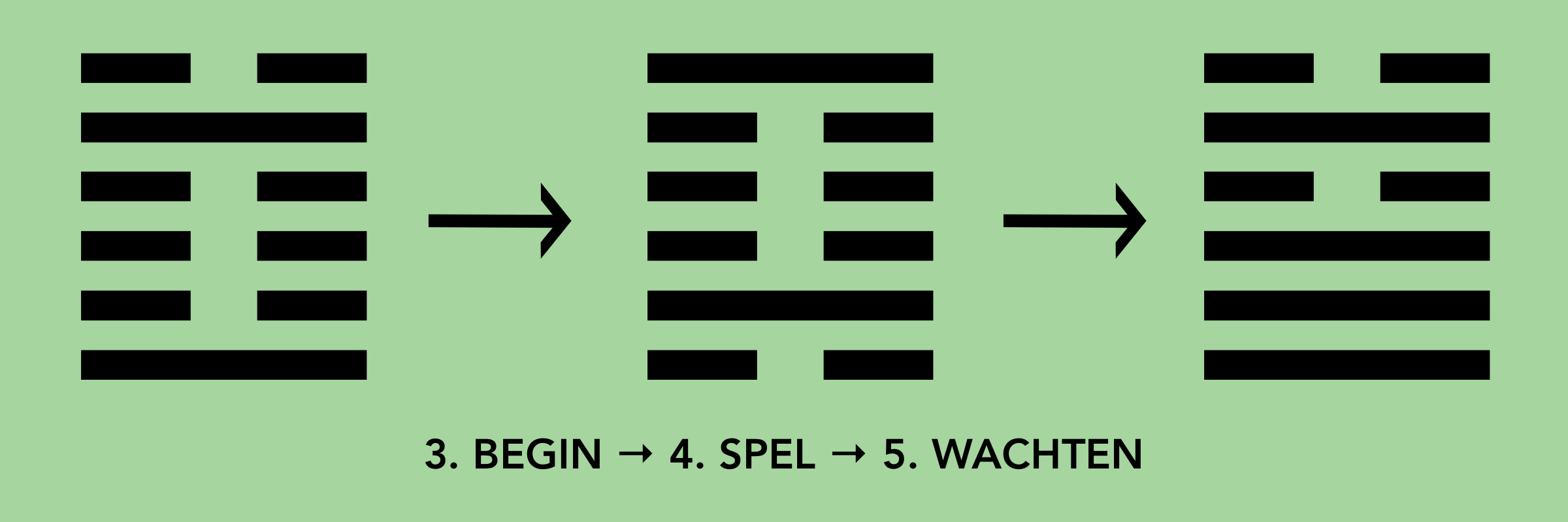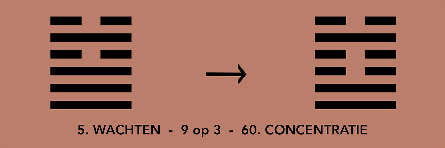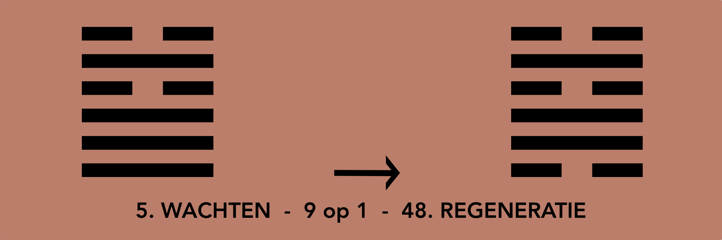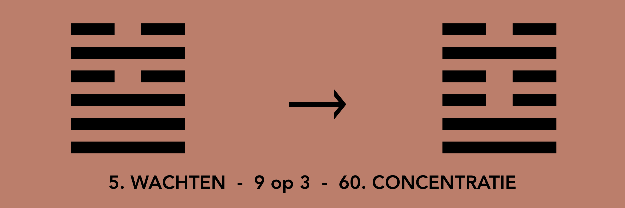 Wachten is een centraal thema in het Boek van Verandering. Er zijn absoluut momenten dat je zonder uitstel je kans moet grijpen door meteen in actie te komen. Maar wie weet, bereik je deze keer wel veel meer door niet naar voren te stappen, te reageren, te handelen. Hoofdstuk 5 exploreert de kunst van wachten. Met verhoogde aandacht waarnemen waar de situatie om vraagt. Wachten en waken.