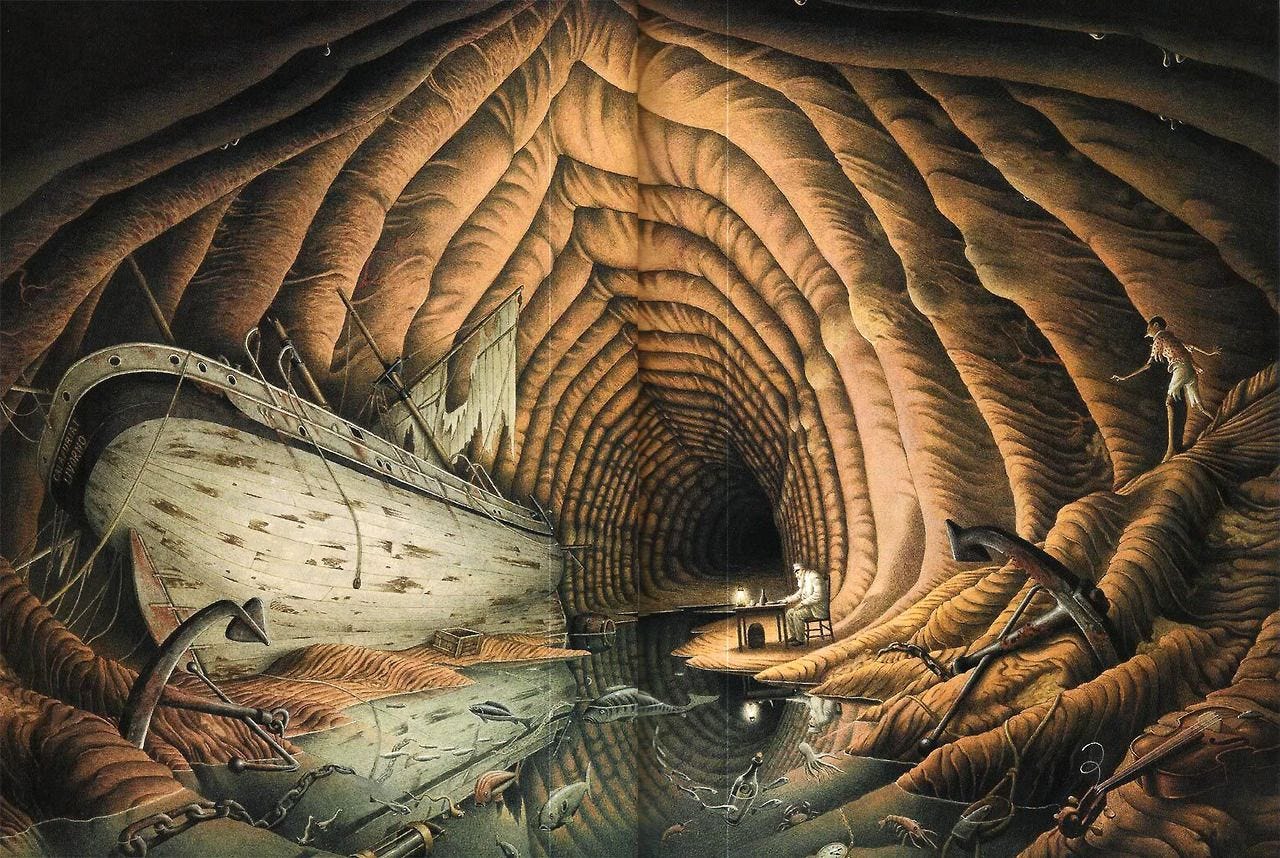 Wordt hier verwezen naar een terugkeer naar de Donkere Middeleeuwen? Of is het een hint naar de transformatieve wereld van de darmen en het microbioom, waar geen licht kan binnendringen?