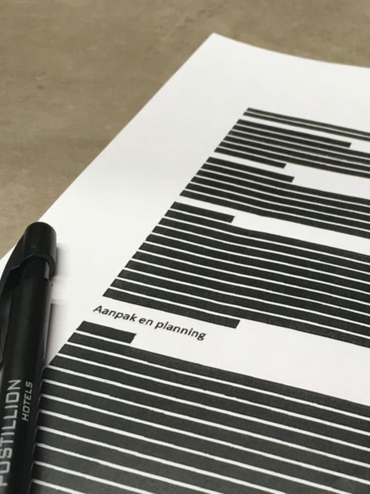 Zou het een verwijzing zijn naar censuur en zwart weggelakte documenten?