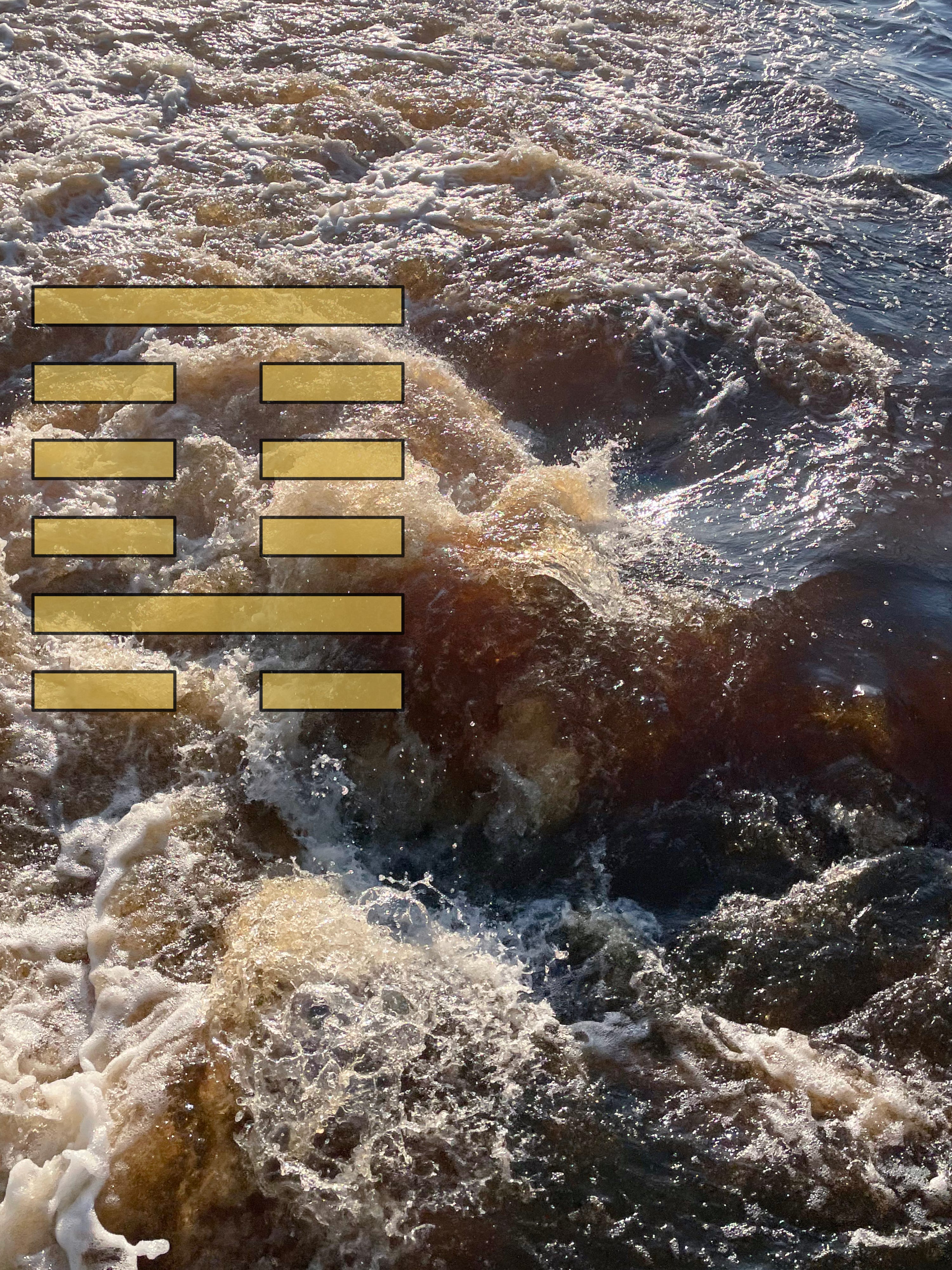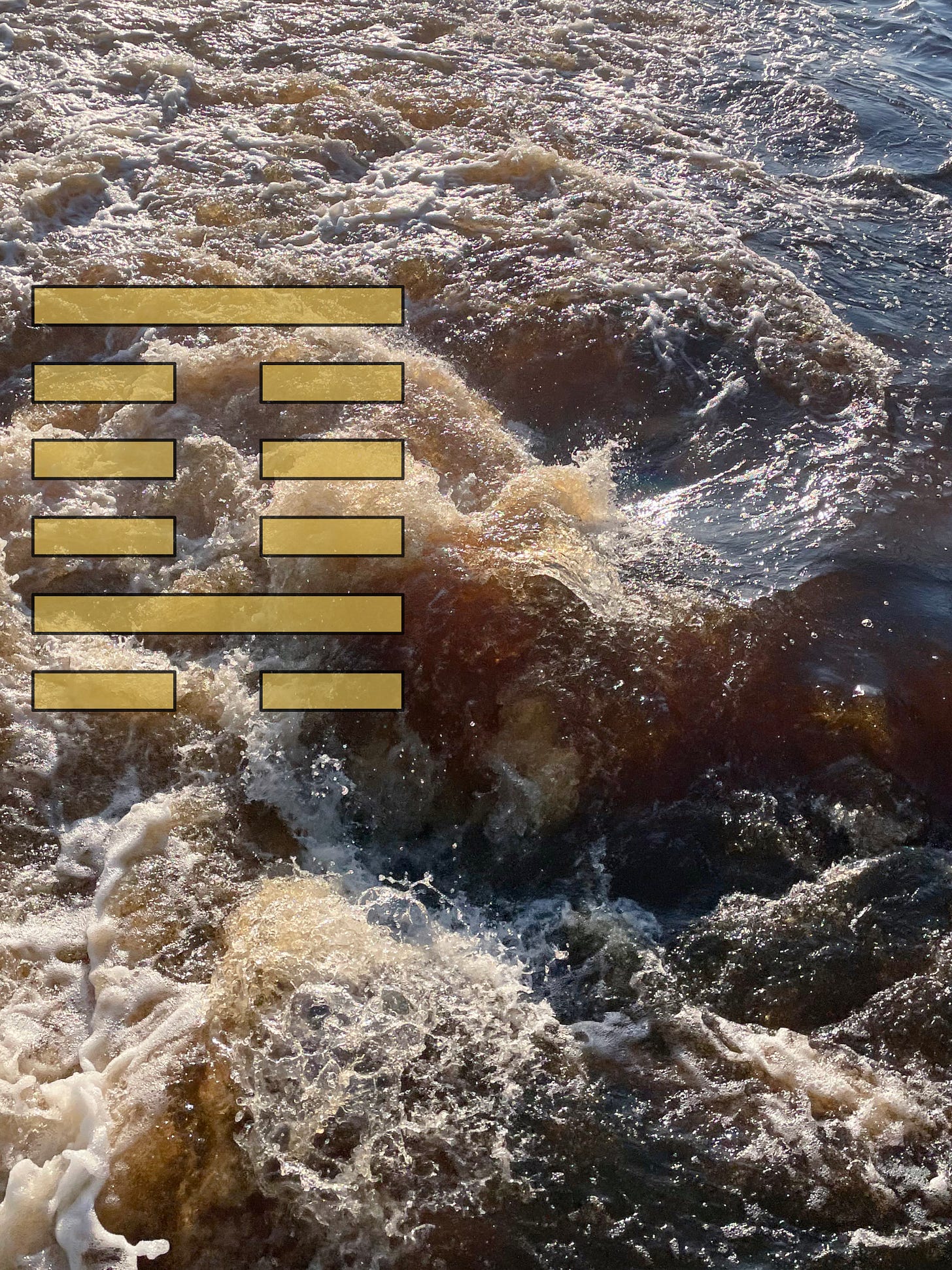 HET BEELD van twee trigrammen: Berg boven, Water beneden. De oorsprong van de rivier ligt hoog in de bergen. Het ijs van de gletsjer smelt.