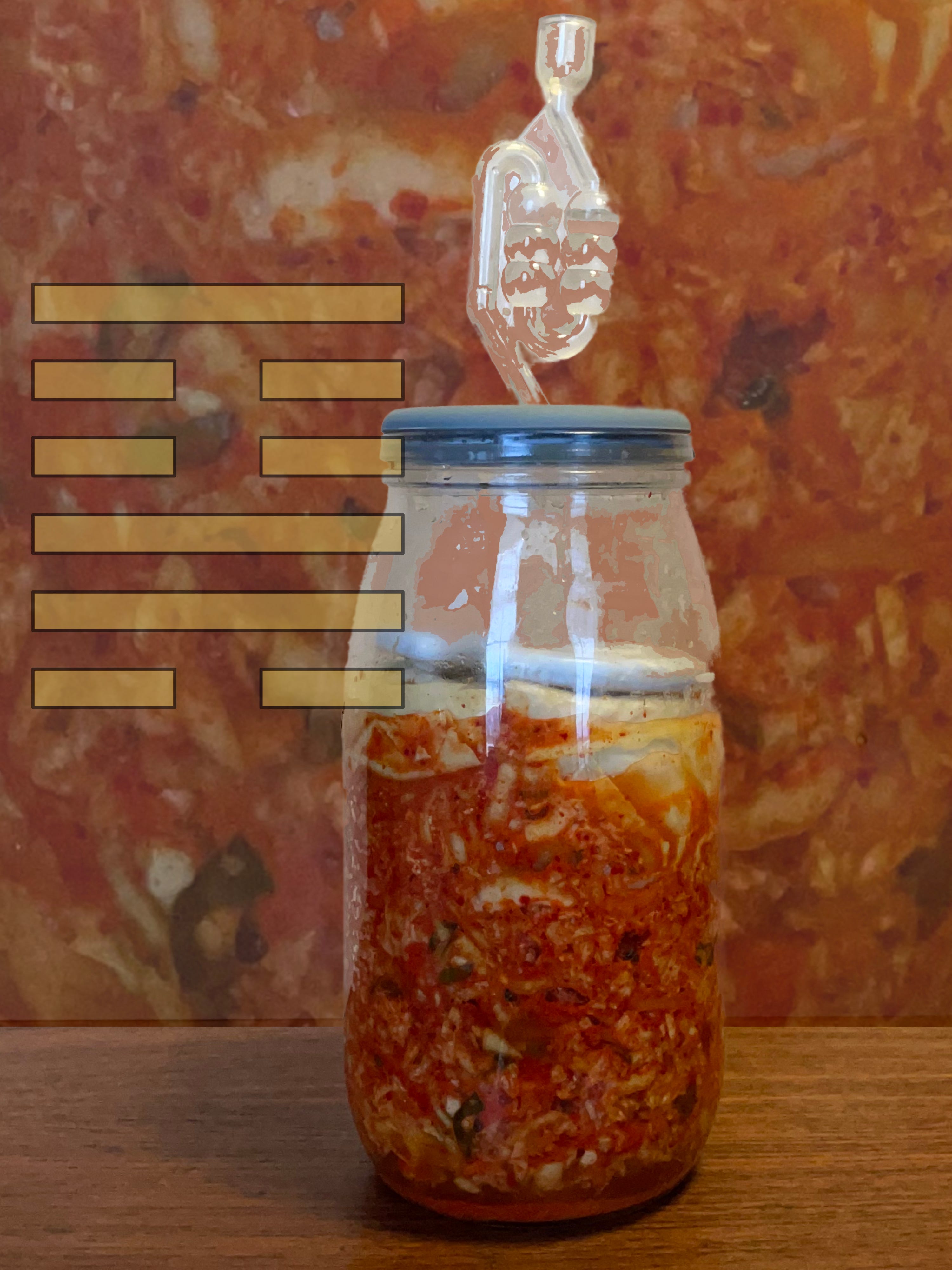 HET BEELD van de twee trigrammen: onder de Wind, boven een Berg. Binnen in de berg is beweging: micro-leven, omzetting van textuur, geur, kleur en smaak, fermentatie.