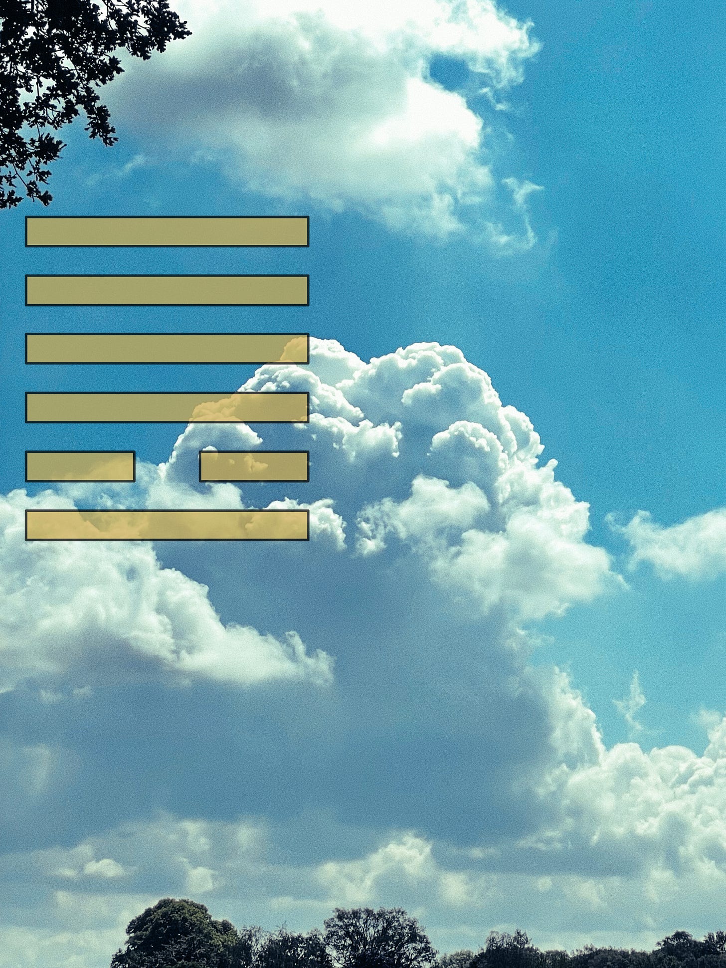 THE IMAGE of two trigrams: below Fire, above Heaven. The sun shines on the earth and from its surface heat rises. Thermals carry water vapour, which, when enough altitude is reached, condenses and form clouds. The energy released from this further amplifies the thrust.