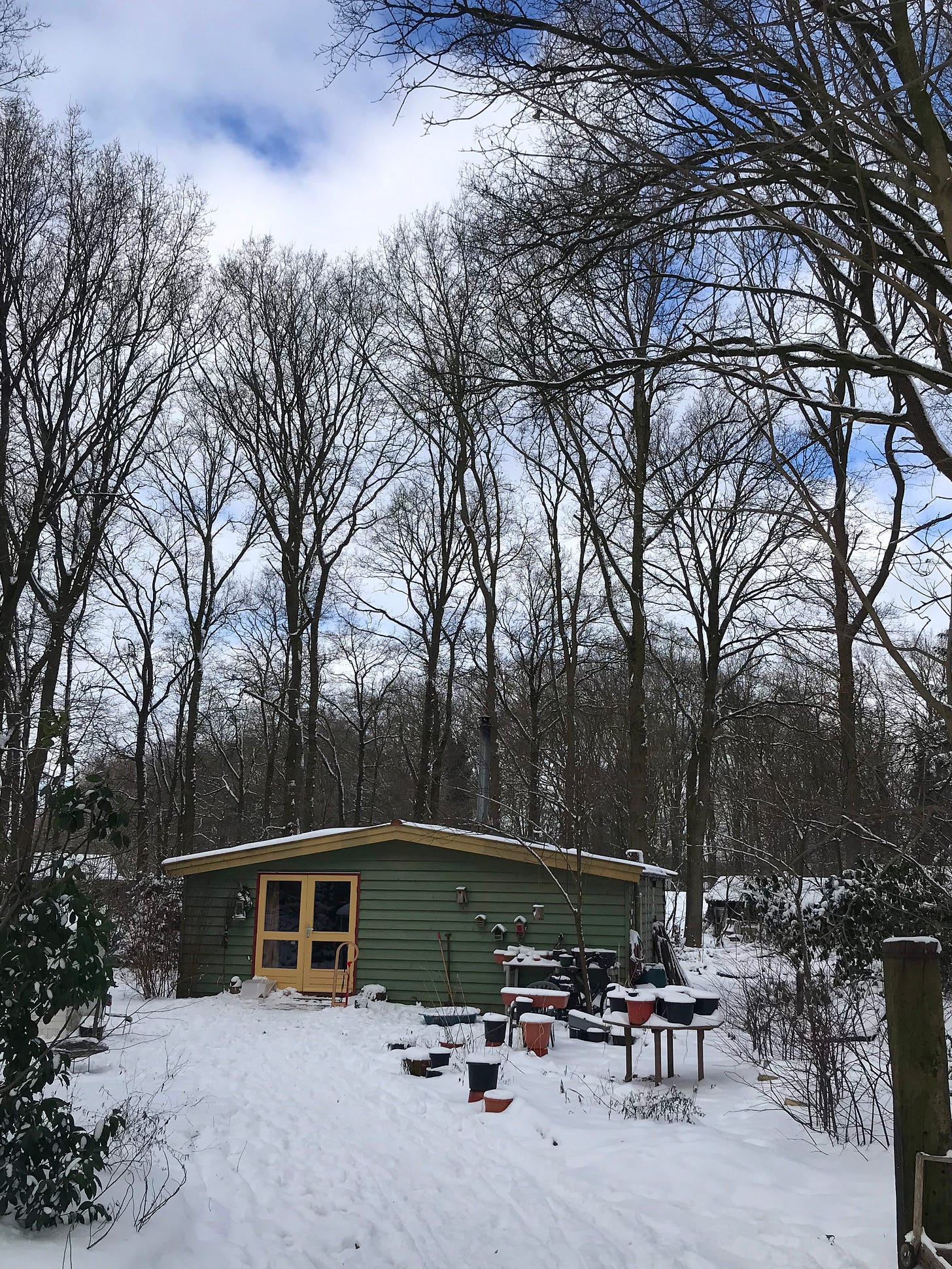 Wat een geluk. Toen de corona tijd aanbrak en het in de stad niet goed toeven was, hadden we een toevluchtsoord, een refuge. Een klein houten huis in een bos aan de oever van de Overijssels Vecht. Een off grid huis zoals dat heet, dat we een aantal jaar daarvoor hadden kunnen kopen. In het midden een houtoven om te koken en je handen en rug te warmen op koude dagen. Een honderd meter diepe bron. Zonnepanelen op het dak, net genoeg voor de waterpomp, telefoonlader en ‘s avonds een enkel lampje.